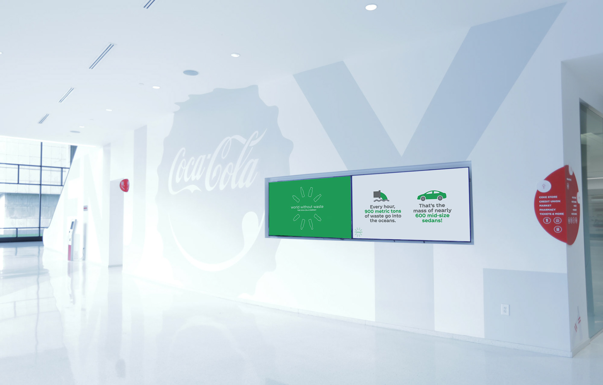 Internal campaign that supported Coca-Cola's "world without waste" initiative. These were rotated on digital monitors in the dining area and reduced paper usage by 20%.